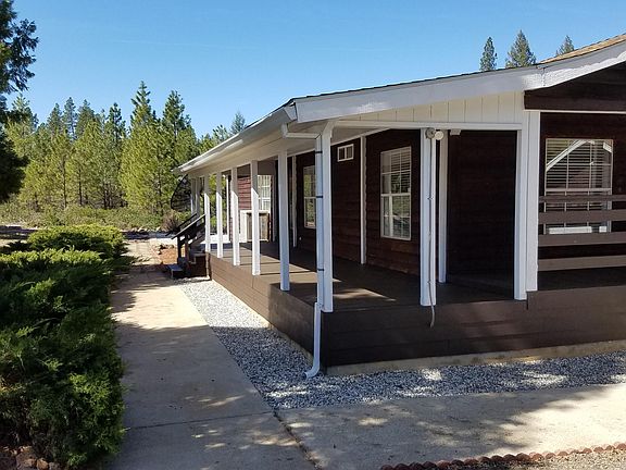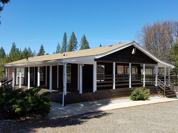 Beautiful, Private and Peaceful Shingletown home in the pines. Extremely nice 3 bedroom, 2 bath home on just over 3 acres with end of road privacy. This double wide MFH has split floorplan, vaulted ceilings, nice open kitchen with custom wood cabinets, center island, dining area, inside laundry pantry area, forced air heat and wood stove. Home has covered wrap around porch with newer redwood decking, above ground pool, spa, gazebo and much more. Detached 2 car garage, storage buildings, fenced horse area and garden area all on a very private 3+ acres in the pines. Must see to appreciate. CB232