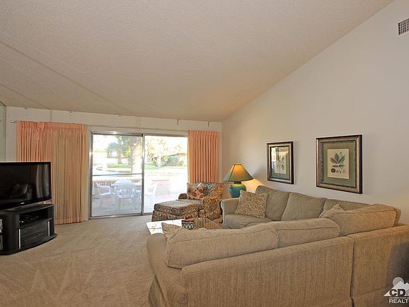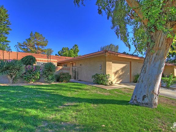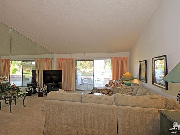 This delightful condo in HOA 14 at Indian Palms Country Club, boasting a rare floor plan, is looking for its new Owner. Overlooking a sparkling new pond and fountains from the rear patio, and glorious mountain views from the front patio, this property has plenty of spots to relax and enjoy our desert vistas. This 2 bedroom, 2 bath home also includes a den/morning room adjacent to the Kitchen, a single car garage, newer carpet, painted cabinets and stainless steel appliances. We are confident this will sell quickly, so put it on your Must See list!