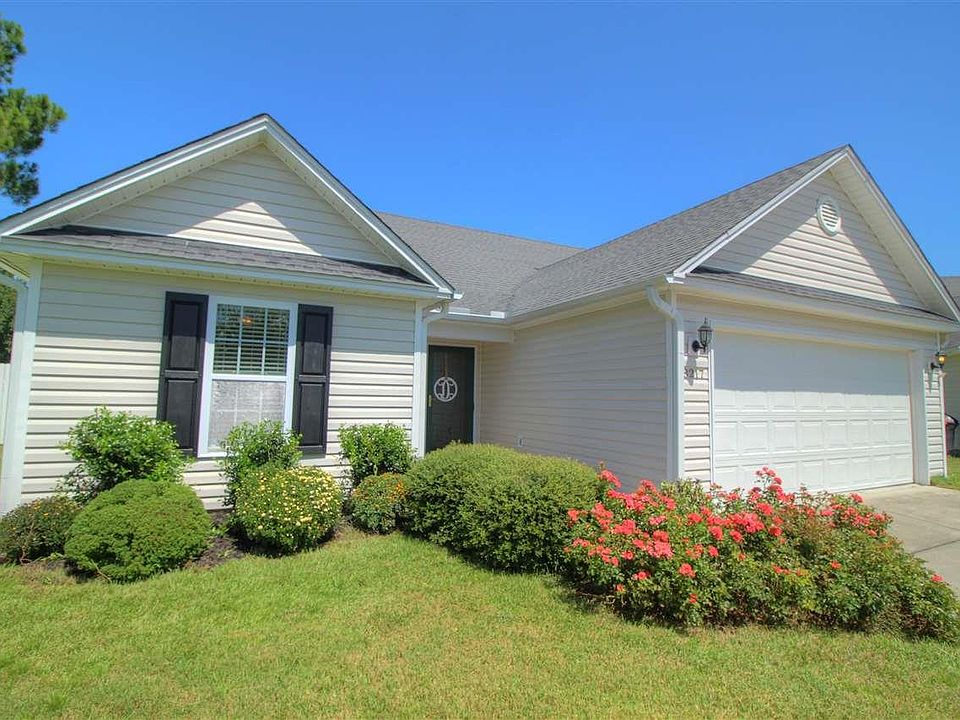 Centrally located in the heart of Carolina Forest, this home is perfectly situated on a cul-de-sac on one of the most private lots in Southgate. The backyard overlooks a wooded lake area and is totally fenced. Inside, you'll find laminate flooring in the great room and formal dining room, tile in the wet areas, and carpeting in the bedrooms. The kitchen boasts granite counter tops and stainless appliances. A large screened back porch overlooks the sizable back yard. Conveniently located just 10 minutes to Myrtle Beach, Southgate features a neighborhood park, pavilion, pool, and manicured green spaces.