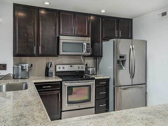 Located in the heart of Scottsdale, with easy access to Loop 101 and world-class shopping & dining, this nicely updated townhome offers 2 bedrooms & 2.5 baths in 1704 SqFt. The living area has plantation shutters and staggered tile floors run throughout the main level. The kitchen has dark cabinetry, stainless appliances, granite countertops and large picture windows that open up to the backyard. Perfect for indoor/outdoor entertaining, glass French doors lead out to the covered paver patio and a fenced yard with artificial turf, perfect for kids & pets to play on. Bedrooms are upstairs. Both have en-suite baths & walk-in closets. The master bedroom has double door entry, mountain views, and a sitting area, perfect for a nursery, home office, or workout room. Other features include an * inside laundry room with shelving for storage, carport parking for 2 cars, storage shed, and a nice community pool. Schedule your private showing today!
