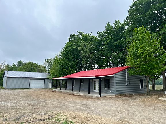 This three (3) bedroom home includes 10 acres of property. Enjoy sitting on the spacious porch watching the wildlife and sunsets. This is a newer home (2024) built with a modern design style. The single level floor plan is enjoyable to use and easy to maintain. The home's design features neutral colors, and LVT (plank) flooring throughout. The kitchen has abundant counter space and beautiful cabinets. The massive 48 x 40 Pole barn has an extra large overhead door with opener, an entry door, and siding to match the home. There is also an additional 20 x 10 shed near the home for additional storage/utilization. The current owners purchased the property in an ''unfinished'' condition and the property is now ready.