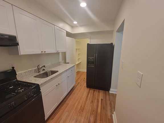 Come see this fully rehabbed rowhome! Brand new kitchen cabinets with granite countertop, refinished hardwood floors, brand new carpeting in 2nd level bedrooms, fresh paint throughout, 2 car parking pad in rear, covered front porch, ample street parking. Although there are only 2 bedrooms upstairs, the downstairs room could easy be used as a 3rd bedroom Pergo flooring in basement bedroom. Full sized washer and dryer in basement with an additional toilet in the basement. Tenant pays for BGE and water. No smoking in units.