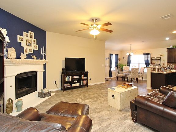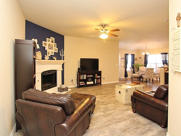Well maintained home in Lawson Farms is waiting for you! A large fireplace welcomes you to the living/kitchen/dining spaces. So open and inviting. The kitchen is very spacious with great storage, a gas range, a new dishwasher and a good size pantry. The master suite is on the opposite side of the home from the other bedrooms and guest bath. Storm shelter in the garage too. Come see this one!
