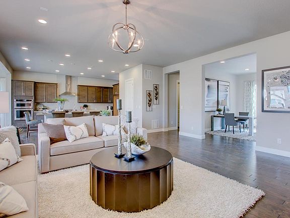 What a great opportunity to own a spectacular ranch style home on a garden level home site, backing to open space. This well designed home features a formal dining room, an outdoor room, and a grand master suite. The kitchen includes a chef's style kitchen, quartz countertops and maple charcoal cabinets. Don't miss the stunning 5" engineered hardwood floors throughout most of the main level! Plus a 3 car split bay garage. Home complete and ready for a quick move-in. Taxes are TBD - taxes are currently assessed on land value only and not on the total value of the property. Est. annual taxes are approx. 1.24% of purchase price. HOA is a metro district and fees are incorporated into the property taxes. Some photos are of builders model home and are only an example (they are not of the actual home available) - Actual photos coming soon