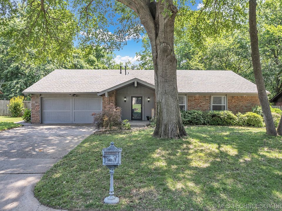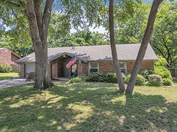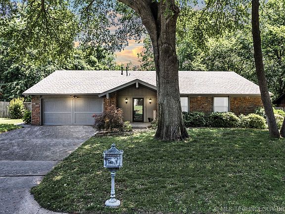 Nestled in the desirable neighborhood, Forest Creek, this one level home is a rare find! Upon entering, the living room has vaulted ceilings with a grand fireplace that creates an immediate sense of spaciousness. The open concept design seamlessly connects the dining room. One of the highlights of this property is the large vaulted back patio that can be accessed through the dining room. The backyard is a true oasis, as it backs to a creek surrounded by mature trees. It's a perfect setting for relaxation and privacy. Backyard also has a large shed. With four bedrooms, this house provides ample space for your family and guests. Three of the bedrooms have large walk-in closets, offering plenty of storage options. The layout is designed to optimize both comfort and functionality. Location is everything, and this property has it all! Situated just down the street from the neighborhood pool and park, you'll have easy access to recreational amenities, vibrant sense of community and JENKS school district. Recent upgrades in 2023: NEW ROOF, NEW CARPET, NEW INTERIOR PAINT. Also, NEW HVAC in 2020 and NEW EXTERIOR PAINT in 2021. NEWER light fixtures and gas stove. AT&T Fiber available. Don't miss the opportunity to make this exceptional house your home! With its spacious vaulted ceilings, stunning backyard views, convenient location, and recent updates, it offers the perfect blend of comfort and style. OWNER/AGENT