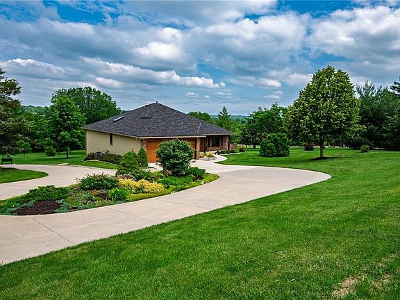 When you drive by, you can’t help but be in awe of this breathtaking property. Nestled on just over 4 pristine acres, this 4-bedroom, 2.5-bath ranch/reverse style home boasts 3,286 square feet of beautifully designed living space with a walkout basement that could offer a separate living space and immaculate landscaping that stops you in your tracks. The long, curved driveway leads to a striking brick exterior with rich wood-tone garage doors, surrounded by mature trees and lush green lawns. Tucked away on the property is a versatile 30x40 outbuilding—perfect for hobbies, storage, or extra workspace. From the moment you arrive, it’s clear this home offers something truly special: space, privacy, and timeless beauty—all in one unforgettable setting. The kitchen was completely remodeled in 2023 with granite countertops, a stylish tile backsplash, new oven, cooktop, and microwave. All bathroom vanity tops were upgraded to sleek onyx with Moen faucets (2023), and all toilets replaced with chair-height American Standard models. The master bath features a remodeled tiled walk-in shower (2014), while the kitchen and bath tile flooring was installed in 2002. A new dishwasher was added in 2008. Interior improvements include updated sunroom and dining room flooring (2020), new master bedroom carpet (2021), and a custom barn door at the bedroom entry (2020). All window coverings were professionally replaced by One Stop Decorating in 2023. Exterior highlights include a rebuilt and expanded deck (2013), just refinished in 2024, new concrete landscape edging by Border Magic (2023), and all-new Provia Endure windows installed the same year. Enjoy enhanced curb appeal and efficiency with new LED exterior lighting (2023), plus a brand-new roof, guttering, and downspouts completed in 2024. Home features a central vacuum system along with a security system - everything has been meticulously maintained and the only thing left to do is move in!
