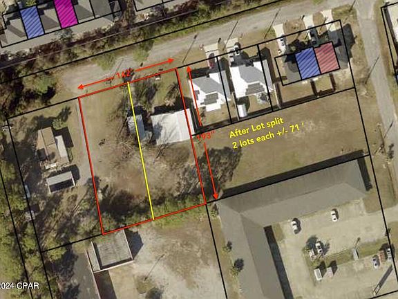 1. The home is mostly on the far east side of the property which means you could possibly leave the existing home and build a new one next to it. This lot qualifies for a one time lot split per Bay County planning & zoning and sewer line is located next door for easy hookup. Buyer to verify details if important.