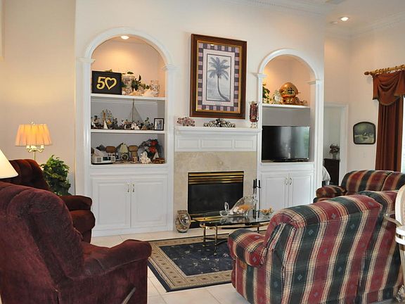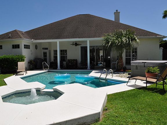 This wonderful Palm Bay home with a pool is spacious and ideal for raising a family and your standard of living. With 3 bedrooms, 2.5 baths and approx 2,662 sqft of living space, you're sure to enjoy all the upgrades and extras this home has to offer. Upon entering, you're greeted with 12' ceilings beautifully adorned with crown molding and decorative columns. Custom designed bookshelves surround a cozy fireplace in the living room and floor-to-ceiling door walls overlook the patio and pool area. There is the more casual den where you can share laughter and games with the whole family. Time to eat? The kitchen features a large island-style breakfast bar, separate pantry, breakfast nook and the appliances are only a year old. The Formal Dining room is the hallmark for your best table