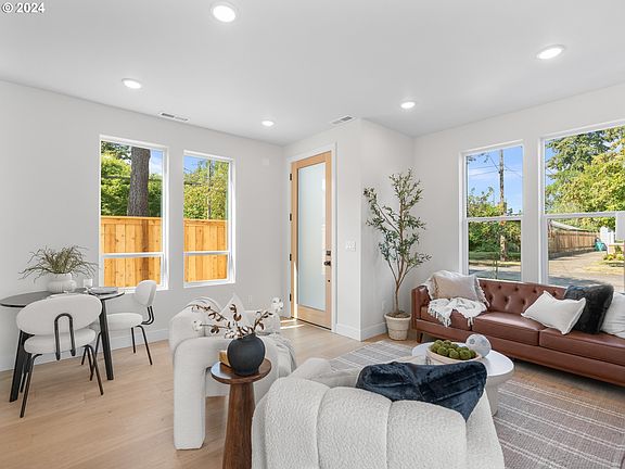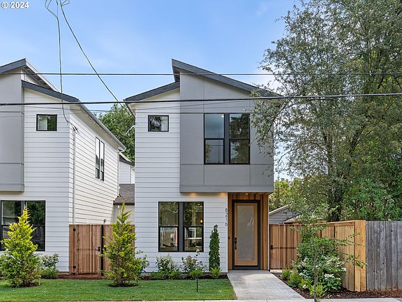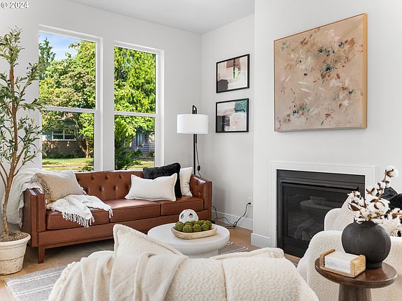 A 2024 Street of Dreams Exclusive! Nestled in the vibrant Portsmouth neighborhood, this modern new construction duplex exemplifies quality + versatility. Each duplex is thoughtfully designed with attached wall clusters to meet diverse living needs. The front unit boasts 3 bedrooms + 3.1 bathrooms, while the rear unit offers 2 bedrooms + 2.1 bathrooms, making these homes ideal for multi-gen living or a valuable investment opportunity. Step into the front unit and into the inviting living room with a cozy gas fireplace and be drawn to the stunning kitchen, featuring a spacious eat-bar island, ample storage, stylish lighting, tilework, and stainless steel appliances. The main-level primary suite offers vaulted ceilings, a luxurious ensuite with a walk-in shower, and a private slider to a serene yard. Upstairs, enjoy two additional spacious bedrooms and spa-like bathrooms with elegant tilework. Enter the rear unit to find an inviting living room that flows into a stylish kitchen with warm cabinetry, expansive tilework, and stainless steel appliances. Upstairs, two spacious bedrooms feature lofty ceilings and large windows for a bright, airy feel. This unit also offers off-street parking, air conditioning, and gas appliances for added comfort. The interiors showcase minimalist design enhanced by high-end finishes. Sleek aesthetics, complemented by wood flooring and expansive windows, create a bright and inviting ambiance. The modern exteriors blend harmoniously with the lush surroundings, crafting a perfect balance of urban living and natural beauty. Positioned in the highly sought-after Portsmouth neighborhood, the duplexes are steps away from local businesses, tranquil green spaces, and essential amenities, enhancing the quality of daily life. This walkable community supports a robust outdoor lifestyle, with easy access to parks, community gardens, and more—ideal for those who value nature and community engagement.