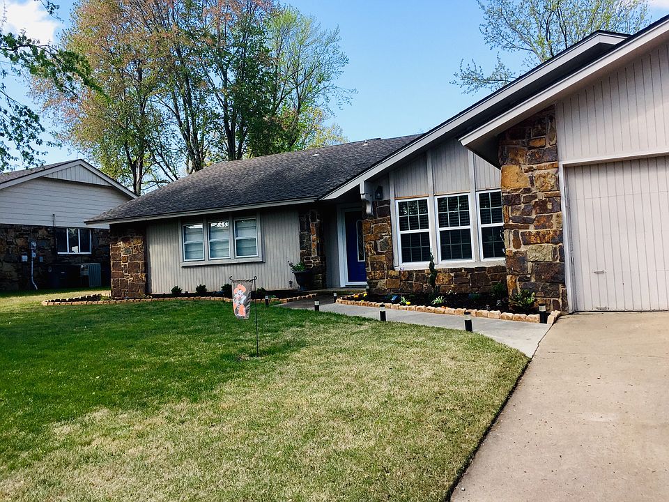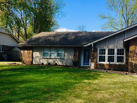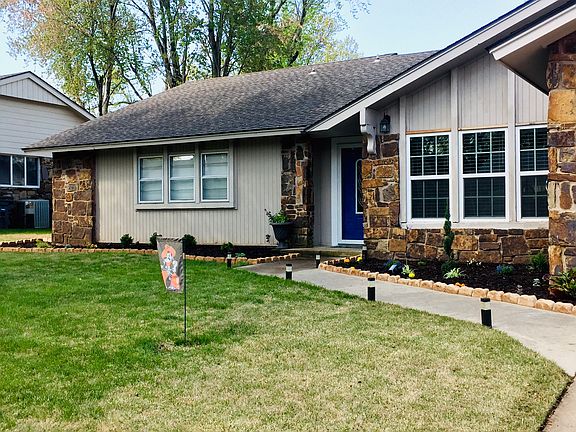 3/2/2 Bright, Happy Home in Jenks School District! Two Living Areas off Kitchen. Stone Fireplace, updated bathrooms w/Granite. Beautiful Lot w/mature trees, Great Neighborhood.