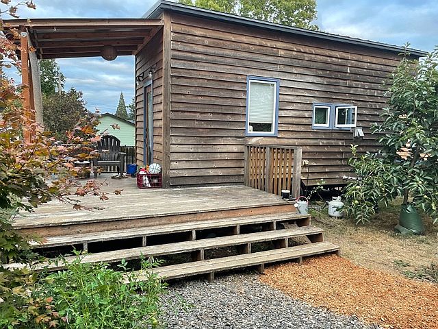 Tiny Home + Garden Studio for rent in backyard of Brentwood Darlington Home. $1050 rent includes both the Tiny House and the adjacent Studio. Utilities are fixed $200/month and include WiFi, trash/recycle, water and electric. Tennant is responsible for filling their own propane. Fenced in yard, this is a cute, clean and comfortable space that has garden beds, bike storage and a covered deck. Yard is in the process of getting a backyard habitat certification for PNW/Willamette valley native plants and habitat. This space and set up has worked well for both couples and individuals. There is a natures head composting toilet that the tenant is responsible for managing. When done correctly the process is clean and simple. The tiny house is 204 sqft with a galley kitchen, built in furniture, bathroom, "sleeping loft" and storage loft. The steps to the sleeping loft are fairly steep. The adjacent studio is included in the lease. It is a 120 sf building with heat, water and electricity. Can be used as an office, studio or bedroom. The yard is shared with primary house and basic regular yard maintenance is handled by landlord. Well behaved pets are allowed. Must be non-aggressive as yard is shared with others. Maximum 2 pets total. Available 12/5/24 All rent and utilities are to be paid as a single payment monthly. This includes everything except for propane (stove, water heater). 6 Month Lease, then converts to month to month. Parking available.
