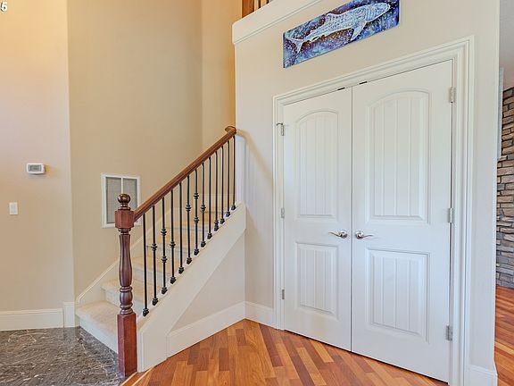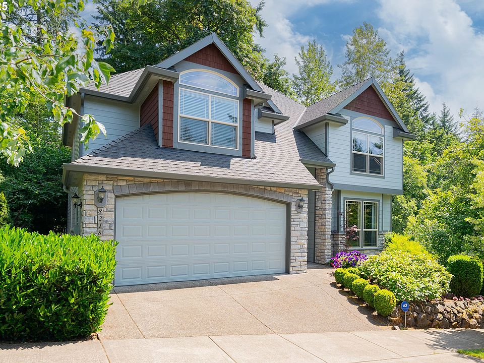 Large custom home with upgraded features throughout. Gourmet kitchen with granite and hardwoods opens to family room with 18 Ft ceilings, Beautiful Arched floor to ceiling windows bring the wooded outside in! Stone fireplace and columns. Large Primary bedroom with jetted tub and walk-in closet. Large Media room and 2 bonus rooms in daylight basement with full bathroom. New Composition deck with cable railing and beautiful Brazilian hardwood top cap. Must see home! Priced right to sell!