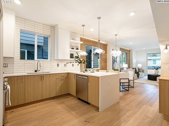 Phenomenal new construction home showcasing modern architecture + elevated design in this impeccable open concept home in the highly-sought after SW Multmonah Village location where new construction is seldom seen especially of this caliber of finish! Be welcomed with high-end finishes + neutral designer tones across the spacious + thoughtfully designed home. Quality can be seen with the custom kitchen boasting gorgeous tile work, slab quartz counters, custom two-toned cabinetry + gas range! Upgrades grace each room with custom built-ins flanking the gas fireplace with gorgeous tile surround, wood + mixed material accented walls, custom modern wood slat staircase, hard surface flooring + bedrooms with tray ceilings + accent lighting! The ensuite is a true oasis with impressive dual vanity, walk-in shower + expansive walk-in closet! Outside boasts a fully fenced yard with coveted fenced backyard + covered back porch with recessed lighting, perfect year round! Plans for this gem were submitted prior to Portlands new restrictive zoning code so you get the benefits of extra square footage, off-street parking + garage!! Perfect proximity to Multnomah Villages idyllic restaurants, shops + only 0.3 mi to Gabriel Park! Enjoy 1-year builder warranty from this local boutique builder! [Home Energy Score = 9. HES Report at https://rpt.greenbuildingregistry.com/hes/OR10222270]