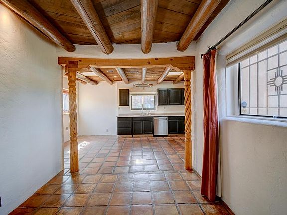 Wonderfully charming 4 BR Pueblo home featuring 2 kiva fireplaces, vigas, thick adobe walls, and saltillo tile. Spacious kitchen with breakfast nook, and separate dining area. The original front portion of the house has a furnace, refrigerated a/c and its own tankless water heater. The primary and 3rd bedrooms were an addition many years ago, with radiant heat, evap cooling and a 2nd tankless WH! The sellers have added 13 solar panels (seller owned) which provide amazingly low-cost energy bills. There is a newer water softening system, including a reverse osmosis. 3 new electrical panels in 2022. A lovely patio with Gazebo is off the kitchen; and a separate private courtyard in backyard. Situated on a corner with side yard access! Close to I-40 entrance and many other conveniences!