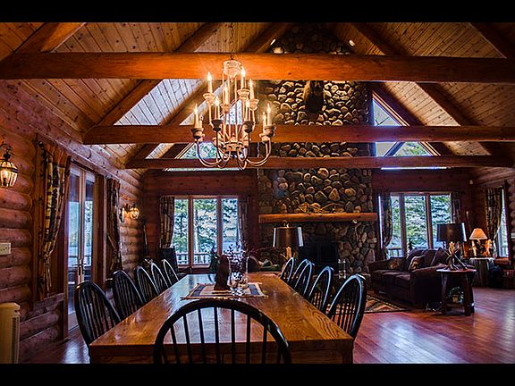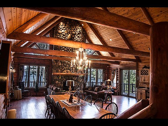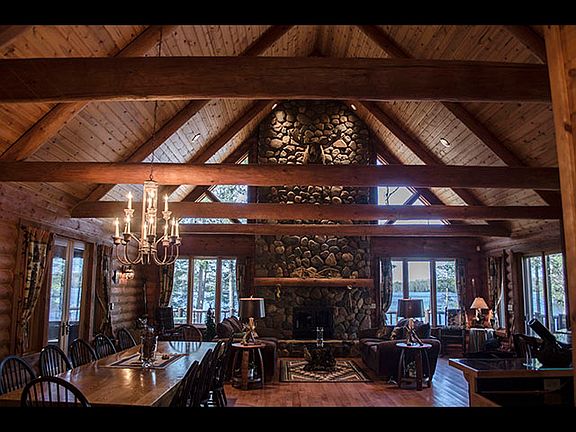 A short drive from town through the scenic Wisconsin Northwoods leads to this majestic log masterpiece on the Three Lakes Chain. This log home sits quietly on the southern shores of Long Lake on 580 feet of quality frontage. The wooded lot is beautifully landscaped, has a nice gradual approach to the water and offers a very private setting. Log accent beams, tall ceilings and a massive floor-to-ceiling field stone fireplace invite you into the main living area where you can entertain all of your friends and enjoy the big views of Long Lake. The home also features 5 bedrooms, 3 baths, a finished basement complete with sauna and whirlpool, an upstairs master suite and a wonderfully convenient screen porch that sits just off the dining area and offers great views of the lake. This home is ready for a new owner and needs to be seen today!