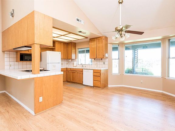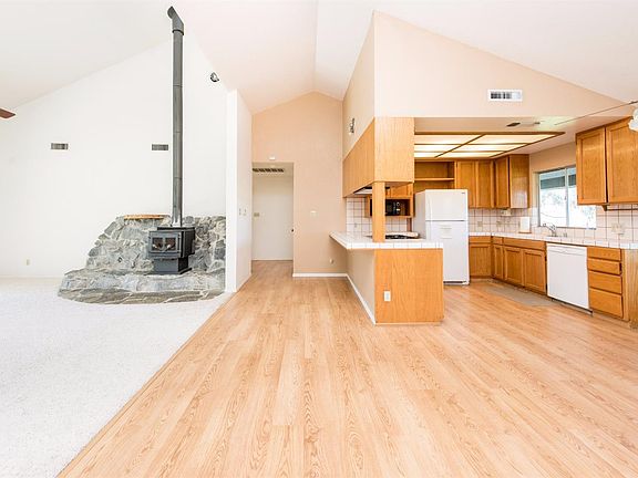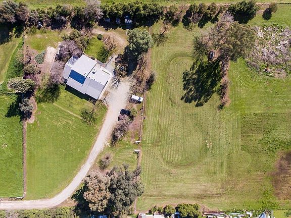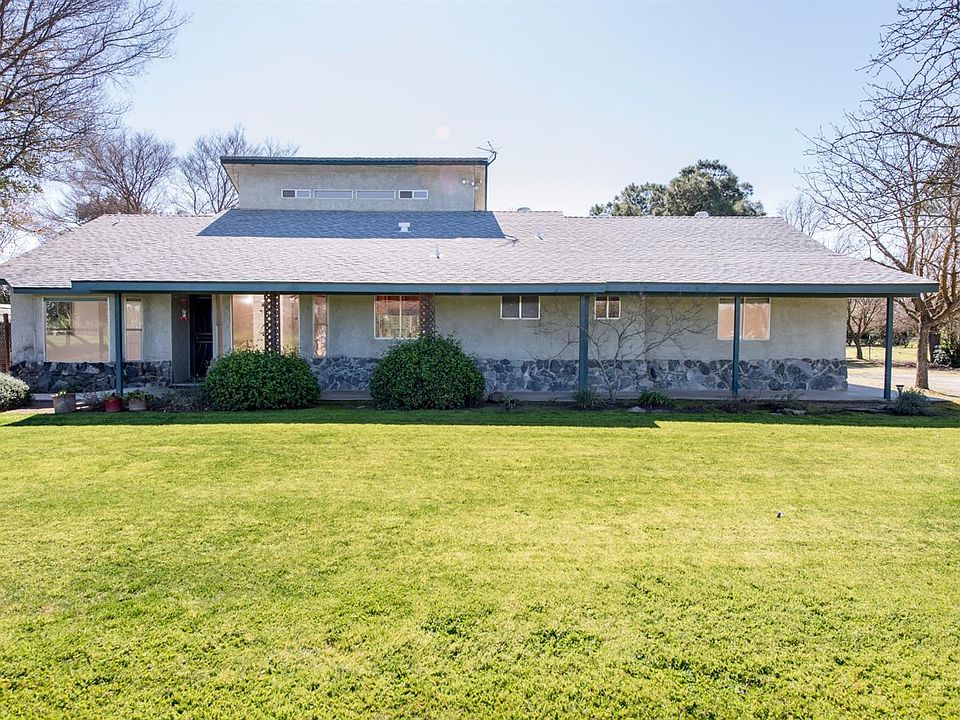 This beautiful country home rests right near the heart of Clovis. Located across the street from Dry Creek Elementary this secluded 2+ acre property is a perfect retreat from the city, but close enough to take advantage of all the benefits. The house is 3 bedroom, 2 bath with 1729 sqft. As you walk inside you are greeted with an open floor plan, laminate wood flooring, elevated ceilings, large windows allowing plenty of natural light, a practical 'U' shaped kitchen, and even a great stained glass window. Off the kitchen to the west is an isolated master suite and a large laundry area. On the east side of the home are two bedrooms with a bath. The bathroom has handicap features with hand rails and a low entry shower. Outside there is a storage shed, a partially fenced area that could easily become a pasture area, potential chicken coops, large mature trees, and lots of land. This is a must see home.