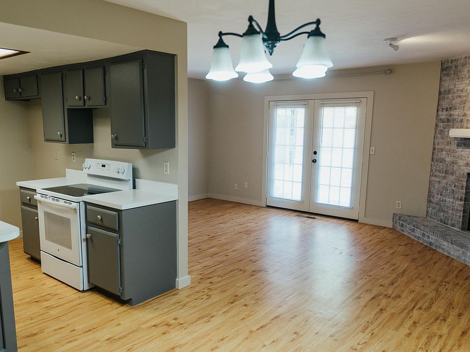 Located on quiet street. Freshly painted with new carpet in bedrooms & new luxury vinyl plank flooring in all other areas. New blinds on all windows. Washer & dryer included. New refrigerator & dishwasher. Beautiful fireplace with gas log. French doors leading out to patio with nice yard. Oversized two car garage. Quick & easy access to Kilpatrick Turnpike. No pets or pet sitting. No smoking or vaping. 1 year lease & $1300 deposit. Tenant responsible for all utilities & renter's liability insurance