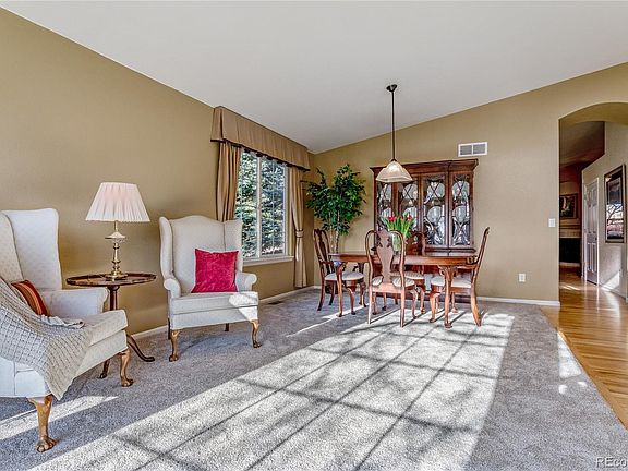 Rare ranch with 3 car garage in Castle Pines. This light and bright filled home has an open floor plan with 3 bedrooms (one of the bedrooms is being used as on office and has French doors and built in book shelves) and 2 full bathrooms on the main level. Formal living with a large bay window and dining offer loads of space to entertain plus there is a family room that opens to the kitchen, sunny breakfast nook and access to the covered patio. The kitchen has new stainless appliances and large kitchen island. The spacious master suite has a large walk-in closet and an updated bathroom with new shower enclosure, fixtures, granite counter top and tiled floors. The basement is partially finished and includes an additional bedroom, a roughed in bathroom and loads of storage space that could be finished for additional living space. There is a large covered porch and the backyard has a privacy fence, mature trees and there are no neighbors behind. The appliances and carpet are brand new and a radon mitigation system has been installed. Beautiful neighborhood and home convenient to local shops, restaurants, I-25, DTC, Castle Rock, Park Meadows, The Ridge Golf Course and Clubhouse, Nearby Parks and Trails (Daniel's Gate, East West Trail...).