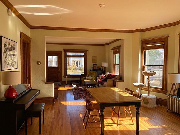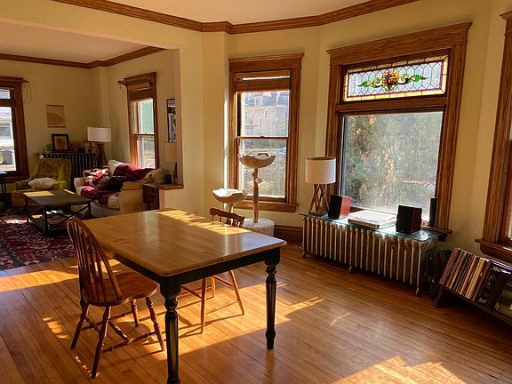 Large 2 bedroom with high ceilings and original woodwork. 1 garage stall and 1 off street parking space. Open kitchen with large island and gas stove, dishwasher, and garbage disposal. Sun room for bike storage. A quarter acre lot with shared fenced-in backyard, a large deck, fire pit, raised bed planters and a chicken coop. Raspberries, strawberry patch, Asparagus, cherry tree (first come first serve). One sterilized cat allowed with pet deposit and pet rent. Owner pays for water, sewer, garbage. Tenant pays the rest. Tenant is responsible to shovel their path to the main sidewalk. No smoking. Stable employment. 2 1/2 times the rent in income. Good rental history. Good credit. No criminal convictions for violent crimes, theft, arson, or property damage. Background/credit check $30 per adult.