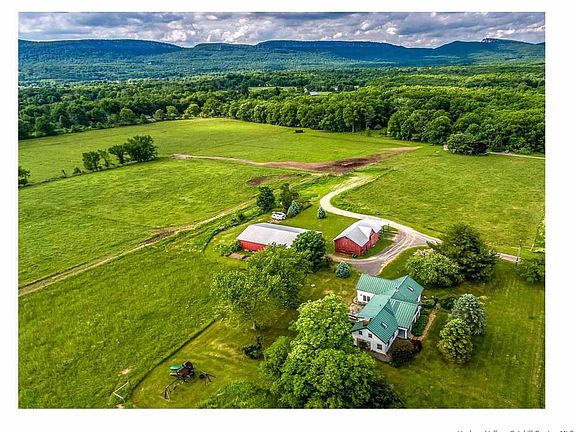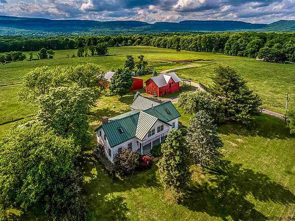 Views, views, views, above and beyond! This quintessential farm property with +/-54.1 total acres of open pasture and mature woods is comprised of +/- 46.2 acres with house and barns + adjacent +/-7.89 acre parcel with Bruynswick Road frontage, SBL#93.2-1-16.113. Also available without the extra lot for $675,000 Built c. 1890 the farmhouse retains its' rustic charm with random width wide board flooring, exposed beams, huge brick fireplace with original brick lined oven, and large, sun drenched rooms. The new-world home includes many upgrades: including a spa style bathroom with steam shower, soaking tub and heated towel rods. Outside lies a lovely blue stone patio with panoramic mountain views and great entertaining flow from 4 sets of French doors leading to the kitchen, dining, family and living rooms. The original 2-story barn, c. 1910, has a hay loft and machinery area with overhang. The second, 40 x 64 barn offers approximately 2500 sq. ft. of workshop, storage and large hangar area. Additional water and electric sources service the barns. Fields are currently leased to a tenant farmer and his herd of Red Devon cattle in exchange for an agricultural exemption on taxes.