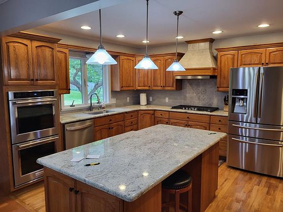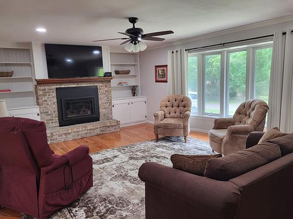 Beautiful ranch home with lots of upgrades 2021-2023. Fireplace with remote, generac generator, reverse osmosis, front deck, bathroom gutted and remodeled, other 3/4 bath was added with large walk in ceramic shower, laundry moved to first floor, French doors added to sun room, new lighting fixtures thru out. Both front doors replaced, lots of newer flooring thru out, large kitchen with tons of cabinets, all lowers have pull outs, large center island with storage and seats. This kitchen is fantastic. Items staying, cooktop, refrigerator, double oven, dishwasher, microwave, washer, dryer, garbage disposal, full basement with a couple of rooms finished for storage also b-dry system was put in wear needed. Laundry on first floor, huge sun room on back of home overlooking the large back yard and lots of flowers. Just a great ranch home.