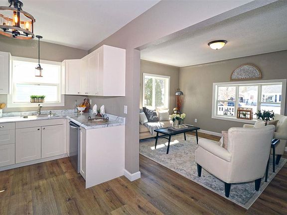 This must see home features 2 bedrooms (soon to be 3) and 2 full baths. Within walking distance of the golf course and local parks. The covered porch in front provides curb appeal and an additional outdoor space. Main level includes an open concept kitchen/dining room with new kitchen counters and cabinets, along with stainless steel appliances. New flooring, doors and trim throughout the home. Updated bathroom on the main level. The lower level master bedroom and ensuite allows for ample private space to make this room your own.