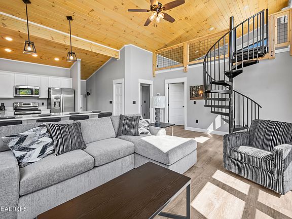 MOTIVATED SELLER! WOW FACTOR AND AN UNBELIEVABLE PRICE! BRAND NEW 3BR/2BA MOUNTAIN MODERN CABIN IN SEVIERVILLE, TN WITH MOUNTAIN AND LAKE VIEWS WITH LAKE ACCESS, GAMEROOM, MEDIA ROOM, LOFT, AND IS BEING SOLD FULLY FURNISHED TURNKEY AND READY TO START PRODUCING INCOME! Projections of $80,000 from reputable rental companies! Located in one of the most prestigious gated lakefront subdivisions on Douglas Lake with top of the line amenities yet only a short drive to enjoy area attractions, Dollywood, Pigeon Forge, shopping, and Gatlinburg. Step in to this oasis in the heart of the Smoky Mountains with all the amenities needed for an unforgettable experience and top earning short term rental! Setup to sleep several to maximize income! Top of the line finishes including hardy board exterior siding, stone accents, composite decking, and natural light throughout with an abundance of windows to capture the Mountain Views! Interior features include a fully equipped kitchen with stainless appliances, quartz countertops, and an island for additional seating. Eat in dining area in the open concept, a cozy living room with soaring vaulted ceilings, stone accented electric fireplace, access to the expansive deck with hot tub and outdoor seating. Two king suites with walk-in tiled showers with glass door enclosure. Bunk room with bathroom with a tub/shower combo. Also, enjoy the spiral staircase leading to the bonus room nook. Huge game room for entertaining with multi-arcade, media room, and more! Multiple levels of decking to enjoy the serene and peaceful setting. Timberlake Bay is a gated subdivision with gated entrance, clubhouse, outdoor pool, boat dock, and boat storage. Easy access with no steep roads and ample parking space in the paved driveway! Bring your boat and enjoy Douglas Lake or take a short drive to Dollywood! Perfect second home, overnight rental, or even a permanent residence.