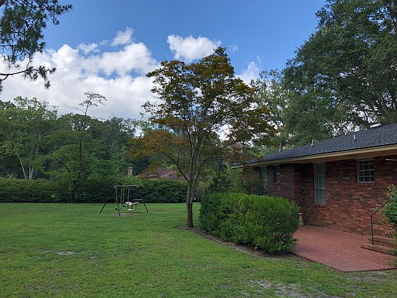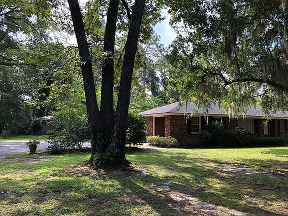 UNDER CONTRACT. This gorgeous all brick home is situated on a lush acre with moss draped oaks. The split floor plan has 3 beds, 2 baths and ample room to live. The master suite features dual closets, large bathroom vanity and a cultured marble shower stall. A wood burning fireplace complements this all electric home complete with an instant heat hot water heater. Inside you will find solid oak hardwood floors and cabinets along with other upgrades added during a 1994 remodel. The HVAC was installed in 2015 and a new roof installed in 2017. Wood window blinds, curtains and ceiling fans remain. This home is just as impressive outside; complete with brick patio, shallow well that supports a sprinkler system and established landscaping. The detached 20'X40' garage is perfect for projects large and small. Average bills: Power bill $100, City Water/Sewer/Trash $58.