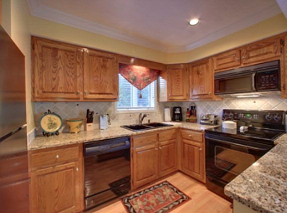 Recently Renovated Condo in Chetola Resort has a real Mountain feel. Oak floors through out, tile baths, Granite kitchen and custom window treatments are just some of the recent up dates in this lovely Chetola Condo. The covered porch overlooks the wooded back yard. Most of the furniture conveys.