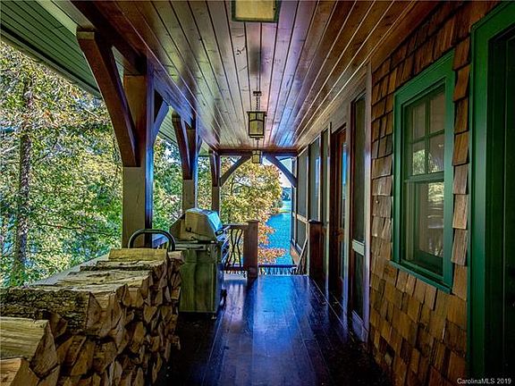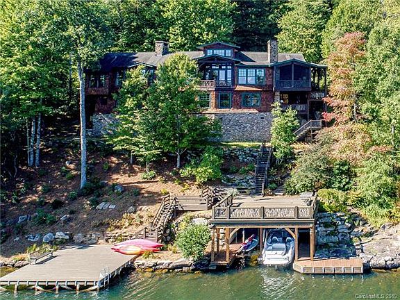 This custom built true timber-peg classic lake home features four bedrooms, four and one half baths spread over two combined lots with over 200 feet of deepwater lake frontage. Celebrated architect Bruce Johnson designed every room in this home to feature incredible views overlooking the pristine waters of Lake Toxaway and mountains beyond. Impressive high quality finishes are evident: "standing dead" Douglas fir timbers, maplewood flooring, Brazilian cherry decking, redwood stair blocks, and four Tennessee stacked stone and granite Rumford design fireplaces to name a few. In addition to the four bedrooms, there is a bed nook with custom handcrafted bunkbeds built into the lower entertainment room. The kitchen features Sub-Zero freezer drawers, Stainless Decor 6 burner gas range and 2 builtin ovens, ice maker and dishwasher. As you overlook the lake you will see a large two slip cedar frame boathouse and a new dock with deep water. The home is up-to-date and ready to enjoy!