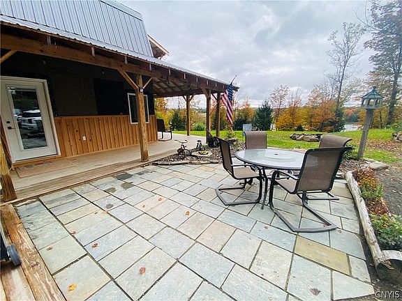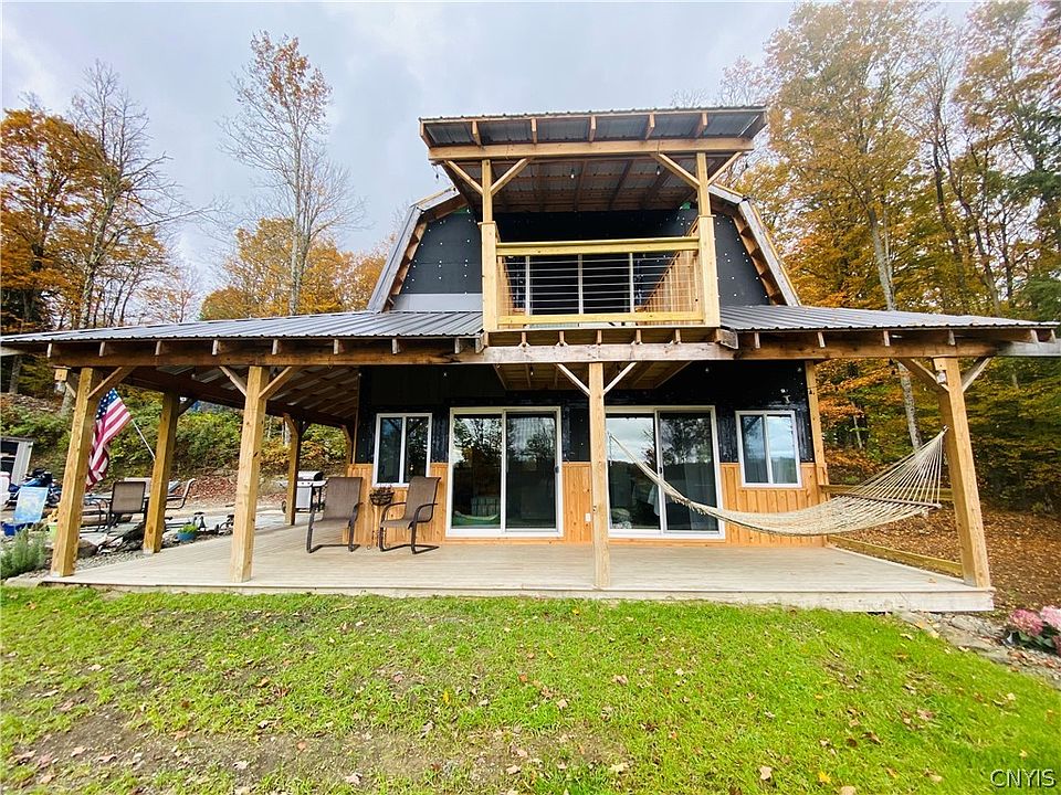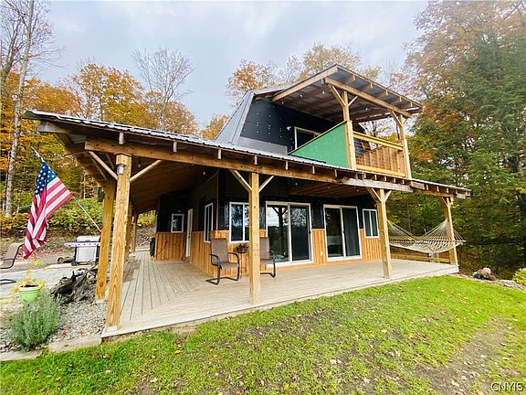 Nature lovers dream with this newly built Cape style home that has beautiful views and privacy. Custom built with natural light throughout, this home has 2, possibly 3, bedrooms and 2 full baths. Open kitchen living room area with center island to gather around. 1st floor bedroom and full bath with soaker tub, walk in shower and heated towel rack. Second floor features open room great for a game area or could easily be a third bedroom, full bath and bedroom with balcony and view. Efficient radiant heat makes for low utility costs. Wrap around deck and patio to sit and enjoy your natural surroundings whether it be watching the Bald Eagles soar above or picking from the many elderberry bushes. Set on over 5.5 acres with walking trails, almost 400 ft of pond frontage and deeded rights to a common picnic area this setting is a rare find...Due to a few shipping delays, siding will be completed in a few weeks