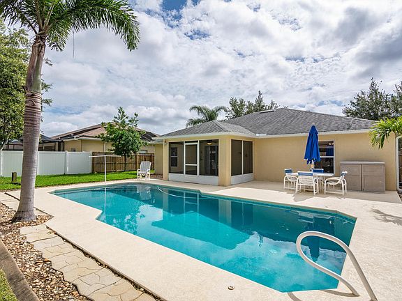 Adorable 3/2/2 West Melbourne Pool Home built in 2003....Great starter home with Brand New Tile throughout. Freshly painted interior, New Carpets in the bedrooms, Updated stainless steel appliances in the kitchen, very Open and spacious with lots of natural light. Completely fenced in backyard with over-sized private swimming pool. Your tropical oasis awaits! This home will not last long!