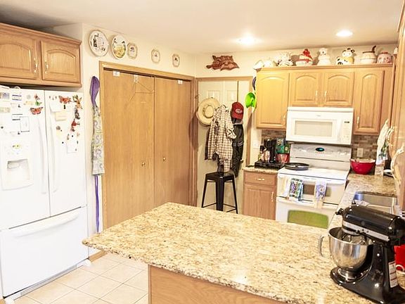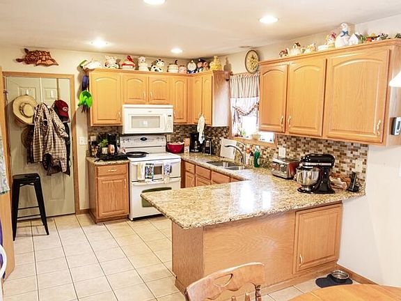 3 Bedroom ranch at the end of a cul-de-sac. This home features covered porch, front foyer w/closet, leading to a roomy great room w/large picture window for morning sun. There is a roomy/functional U-shaped kitchen w/granite counters. Convenient and adjacent dining w/patio doors leading to super 4 seasons sun room. This 2010 addition offers cathedral tongue and groove ceilings and floor to ceiling windows on 3 sides. Down the hall are three bedrooms w/master having private 3/4 bath. Additional full bath on main level. Basements is finished w/large window and brick surround gas fireplace. Yard is private w/mature trees, is fenced, and offers extra storage buildings.