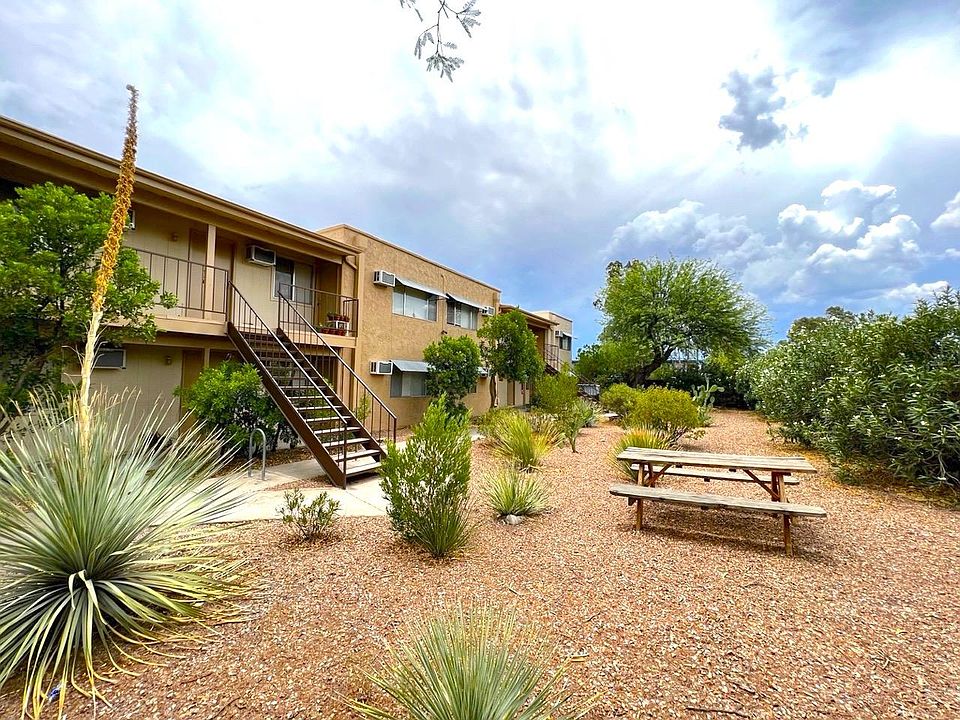We have a 1bedroom upstairs apartment available in a quiet building for $850 per month depending on lease term and number of occupants. This is a quiet updated building with remodeled units with laminate floors, A/C, full kitchen in quiet gated building with WiFi Included, parking and laundry onsite. Tenant pays electric only, and located within close distance to University in Tucson. Go to our website for more details and availability. 12-month lease or academic lease option also available for additional fee