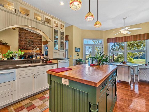 Don't miss this well built custom home, with labor and material cost you couldn't dream of rebuilding today. Enjoy high ceilings and one-level living that feels spacious and comfortable. Nice split floor plan with a private master en suite that has easy access to the laundry room & office, with 2 separate guest bedrooms and full bath. Huge lower level is ready for a builder's dream shop or easily could be converted to living space. The seller will miss sitting out on the covered porch & patio enjoying the views! Features a whole house generator, gas log fireplace, new HVAC system installed in 2022 w/ whole house humidifier & in-duct air purifier, triple pane Pella windows & doors w/ built-in blinds, 2 car garage w/ paved circle driveway and beautiful mature landscaping. 2 lots give privacy across the street or room for a second dwelling. Ask for details about the extra half acre that can be fenced in for animals. Make time to come see this one before it's gone!