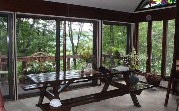 Breathtaking seasonal views from this modern open concept 2 bedroom, 2 bath home in Huntingdon Boro. This home boasts an excellent semi private location on a wooded lot within a short distance of Juniata College, Hospital, Lake Raystown, and numerous other shopping, cultural and social locations. A scenic 30 mile drive will take you to happy valley and Penn State Football games. Living room, dining room, and bedroom have vaulted ceilings with seasonal views. The living room also has build in book cases with a wood burning fireplace insert. The master suite offers a wood burning fire place, dressing area, walk in closet, dual vanity and a shower with natural light. Don't let this rare opportunity pass you by!