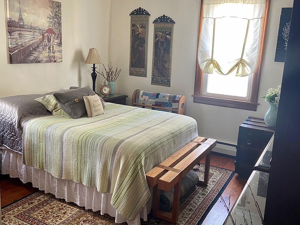 Beautifully remodeled 2 bedroom and 2 bath, second floor apartment. Recently added on is a stunning master bath and living room, with gas fireplace and wood floors. Freshly painted interior and a bonus room perfect for a dining room or office. Plenty of closet space and and on site laundry room. The apartment is located above the garage in the rear. Tenant responsible for gas heat, electric and water/sewer. Tenant MUST maintain the grass, snow and trash. No smoking and no pets allowed. On street parking. $850 per month. $850 security deposit. 6 month lease to start. Credit check a must.