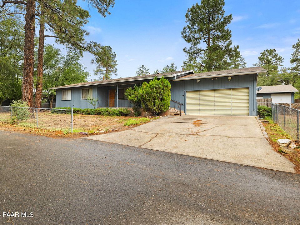 This vintage home is located in a desirable, quiet area close to downtown in the Pines on a cul-de-sac on a paved road with no HOA. Detached rustic interior garage has held 4 cars and there is a 2 car garage attached garage. Fenced RV parking available in the side yard.Backyard is fenced and offers tiered areas that could be used for gardening. Home has an eat-in kitchen, dining room, living room combo,3 bathrooms, 3 bedrooms, large laundry room with an utility sink, walk-in pantry, walk-in storage closet or possibly a canning room.A noteable feature is the fireplace has a beautiful natural stone face adorned with amethyst and other rocks. Bonus room was used as an art studio. The room and house was purposely kept dark to preserve art. This home, owned by one family, retains some of its orinianl retro charm, including shag carpeting that comes with a rake. The roof is in good shape and has no leaks. Wall paneling is also in good shape for being 53 years old. Excellent area for a family or for an auto enthusiast. We have a recent Appraisal for the list price, in current condition by a reputablelocal Appraiser. Home is an Estate Sale and sold As-Is.