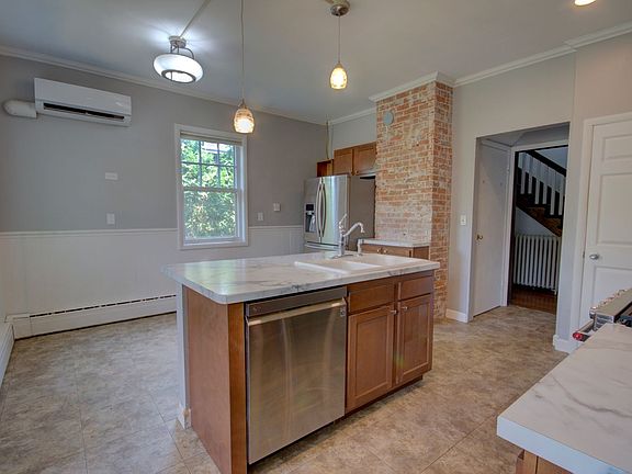 Character with so many updates! This 4/5 bedroom, historic home has all the charm with original wood floors, pocket doors, historic entryway tile and beautiful woodwork, but has all the amenities you could need. Walking into this home you see an elegant staircase, large dining room, updated kitchen with stainless appliances, 1/2 bath, extra large family room with gas fireplace and sun room. There are 4 bedrooms on the second floor with laundry room and 2 full baths, both of which have been beautifully remodeled. The 3rd floor features a bonus room or 5th bedroom. Central air has been added to the home, with a high efficiency boiler and new water heater. Extra deep, two car garage was just professionally built and has electricity. So many outdoor spaces to enjoy a river view! Tenant pays all utilities. 1 pet max with additional deposit and monthly pet fee. Advertised price is for a 24 month lease. 12 month lease available for additional $50/mo.