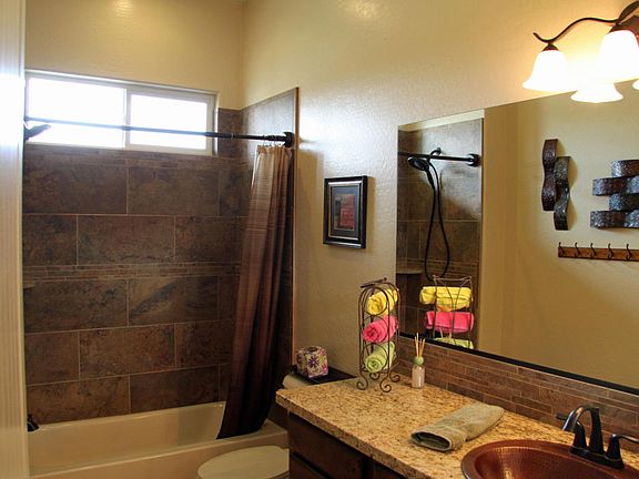 WOW! THIS HOME HAS EVERYTHING. BEAUTIFUL TILES FLOORS THROUGHOUT. THE UPGRADED KITCHEN HAS THE LATEST IN APPLIANCES. THERE IS AN ELECTRIC/ELECTRONIC COOK TOP STOVE AND A OVEN/MICROWAVE. GRANITE COUNTER TOPS, A UPGRADED COPPER SINK BASIN, ROLL OUT SHELVES IN THE CABINETS. THE LIST GOES ON AND ON. THERE ARE CEILING FANS IN ALL ROOMS, UPGRADED WINDOW COVERINGS TO KEEP YOU COOL IN THE HEAT AND WARM IN THE COOL OF WINTER ALONG WITH THE BEAUTIFUL FIRE PLACE IN THE GREAT ROOM. JACUZZI TUB IN MASTER BEDROOM WITH A LARGE WALK IN SHOWER. LOADS OF SPACIOUS WALK IN CLOSETS. THE BACK YARD HAS A COVERED PATIO, FAN, BAR, BEAUTIFUL VIEWS OF THE GOLF COURSE. THE 2.5 CAR GARAGE HAS ROOM FOR THAT MOTORCYCLE, GOLF CART OR...I COULD GO ON AND ON ABOUT THIS BEAUTIFUL HOME BUT YOU MUST SEE IT FOR YOURSELF.