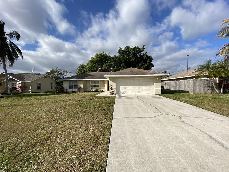 This gorgeous home sits in a great central location in the beautiful city of Cape Coral. It features a wide open, split floor plan with high ceilings a lots of natural light. There is a large two car garage and a big backyard. The kitchen is chef friendly with all of the amenities that one would need. The kitchen features a bar area where friends and family can gather. Please call today for a showing.