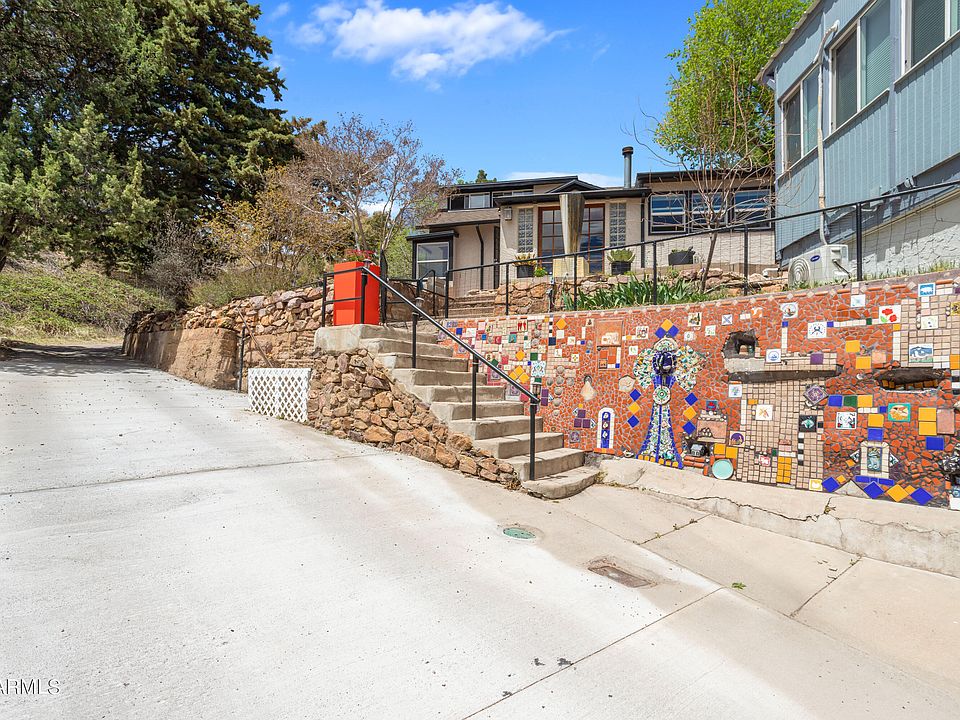 Amazing possibilities with this gem of a property! Single family residence with 2 bedrooms and an amazing bathroom, gourmet kitchen, formal dining, living room and separate sitting area. Outside fireplace and detached laundry facilities including a bathroom and storage for linens, cleaning supplies. This property also includes detached two bedroom guesthouse with a full kitchen. A separate workshop is situated on this 1/2 acre parcel as well. All of this and in old town Bisbee! Amazing park and basketball/volleyball right across the street!