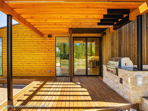 The layout includes a primary suite on both the main level and upper level to give owners flexibility depending on preference. Three additional bedrooms are located on the upper level, one of which would convert nicely to a den. Above the oversized three-car garage is a bonus room perfect for a home office or gym. The kitchen, dining room, and living room flow together onto outdoor patios on two sides. One features a fire pit with big views of Mount Sopris. The other is equipped with an outdoor grill and hot tub, and is wired for a cold plunge.