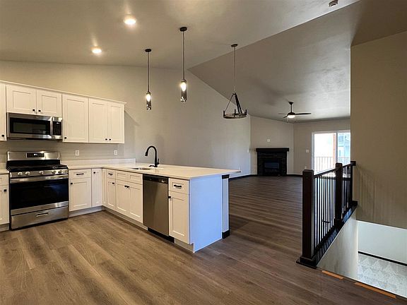 Pending - Closes 10/18. New ranch zero lot floor plan by Glick Builders. Walkout lower level. 2 bedrooms on the main level and 2 bedrooms in the lower level. Featuring white cabinets and hard surface counter tops throughout. Kitchen has a breakfast bar, stainless appliances, and large pantry. Gas fireplace in the living room that leads out to the covered deck. Walkout lower level has 2 bedrooms, large rec. room, and bathroom. Right Side.