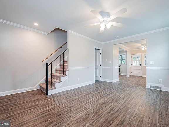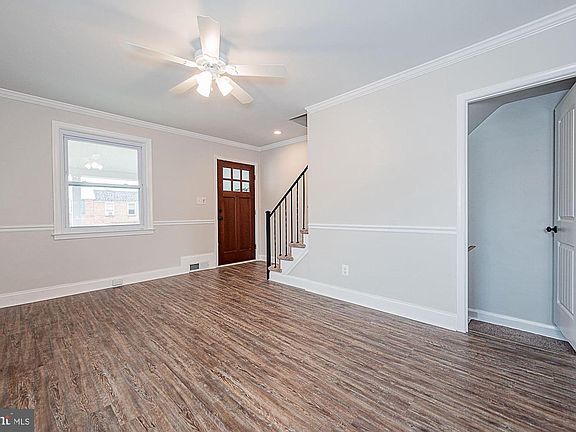 Beautifully renovated corner lot townhome featuring an open floor plan and an easy indoor and outdoor flow ideal for entertaining. Enter into the main level by way of the front porch and experience modern flooring, a chair railing, and crown molding. Two sizable bedrooms adorn the upper-level highlighted by plush carpet and a full bath accented by ceramic tile and upgraded fixtures. The fully finished lower level provides many opportunities as additional living space or a possible bedroom with access to the rear spacious yard and porch. Major commuter routes include I-95, I-696, and I-83.
