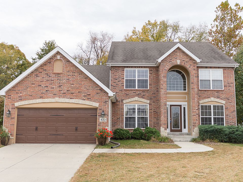Lots of WOW features in this 4 BR, 3 Bath 2 story at end of cul de sac backing to tree with a large vinyl fenced in yard! This home has a beautiful leaded front door that opens to a 2 story foyer with balcony & hardwood floors, bookshelves & french doors that lead to office. Formal DR has designer ceiling, picture frame molding/chair rail. Fabulous 2 story great room with a wall of windows & a wood burning fireplace w/ granite surround & a beautiful staircase to the 2nd level. Kitchen has granite counters/breakfast bar, desk, maple cabinets w/ crown, stainless appliances, wood floors & door in breakfast nook that leads to the large patio & fantastic/semi private backyard. Master on the main level w/ vaulted ceiling & luxurious master bath w/ ceramic/double bowl vanity & dual closets. Drop zone & laundry area on main. Upstairs 3 spacious bedrooms & full bath. Basement finished with office w/ closet, huge family room w/ kitchen/Frig & microwave area & a full bath. Zoned HVAC