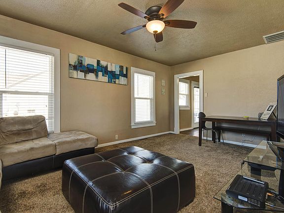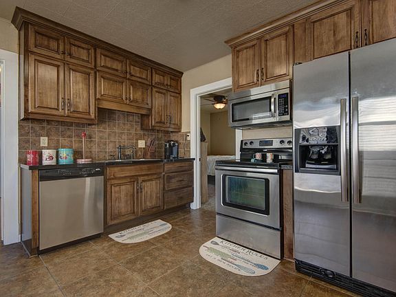 Updates through out this home including kitchen cabinets, light fixtures, granite counter tops, stainless steel appliances tiled floors and updated bathroom. Large utility room with extra storage. Large yard with detached garage. Covered front porch. Home is ready to move into and within walking distance to schools.