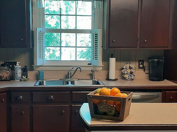 Beautiful home located on the edge of town allowing for the convenience of city living with a country feel. The house is situated on a large double lot with wooded backyard and waterfront views of a private pond. It is 1742 square feet with a double carport and has 3 bedrooms/2 full baths. There are hardwood floors throughout most of the home, open living and dining areas with a large floor-to-ceiling brick fireplace with built-ins. The kitchen offers lots of cabinet and countertop space with a breakfast bar, island and pantry. There are 3 spacious bedrooms, two of which have double closets. The house has a new shingle roof, new vinyl windows and comes with a storage building, 16x24 metal shelter and all appliances.