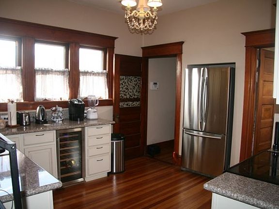 Beautifully Remodeled 2 Bedroom Victorian Home Close to Downtown Colorado Springs! Formal living room with built in shelving, and formal dining with lovely chandelier! Gorgeous kitchen with hardwood flooring, solid surface countertops, new cabinetry and all provided stainless steel appliances! Wine cooler for storage only. Large walk in pantry for extra kitchen storage. Walk out to xeriscaped and fenced backyard with detached 2 car garage and storage shed. Partially finished basement includes family room, laundry room with provided washer/dryer and access to crawlspace. Additional property amenities include central A/C and sprinkler system! Security system available with tenant paid subscription. Located close to parks, shopping, entertainment and more 10;12-24 month lease. Security deposit must be paid in certified funds. Amount based on credit report findings. 2 Dogs up to 25 lbs allowed. Management approval needed. No aggressive breeds. $300 pet deposit. Available April 15, 2015