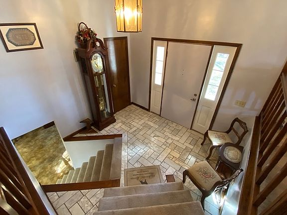 Here's that country home with pole barn, acreage, lake, and the space you've been looking for! 4-5 bedroom brick bilevel with over 3,000 square feet. Large rooms throughout! Separate living and family rooms. Large kitchen w/huge breakfast bar and dining area. Spacious main bedroom w/private bathroom and French doors to the deck. 3 other bedrooms and a full bathroom round out the main level. The lower level is finished with all kinds of possibilities! Anyone need an inlaw suite? Huge family room w/woodburning fireplace insert & brick hearth; the 2nd full kitchen; craft/exercise/gaming/sewing area; bedroom w/ingress & egress; full bathroom; laundry room; no stairs access to the garage. This area would make a great inlaw quarters! Huge deck that overlooks the back lake and property. Perfect for grilling, coffee, reading, etc. 36x64 POLE BARN is awesome....mechanic's dream! The pole barn also has a full kitchen/dining hall (26x19) w/Amish cabinets (great for entertaining) and adjacent office and full bathroom. The stocked lake has a little island. Lots of mature trees.